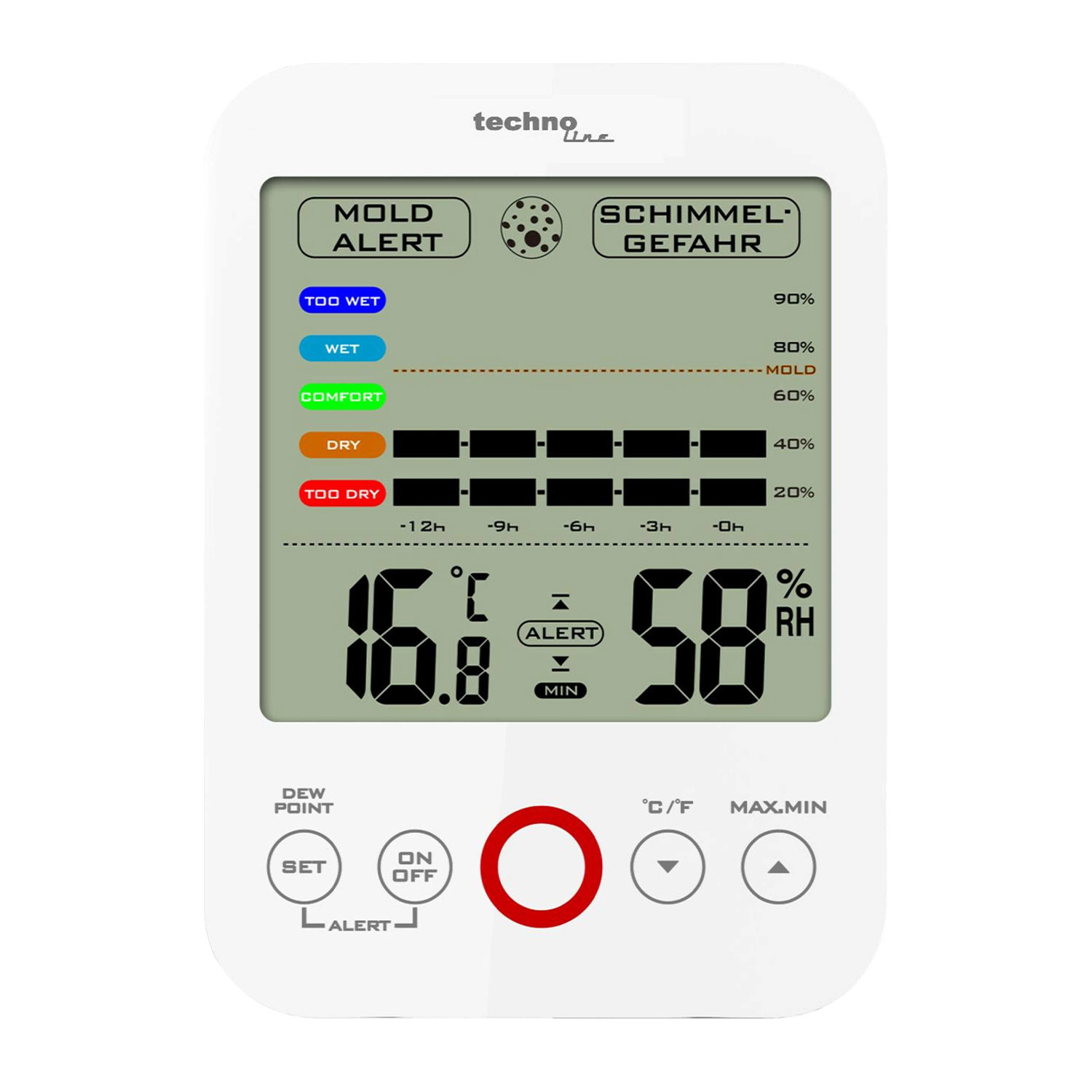 <br />• Programmierbarer Luftfeuchtealarm mit LED