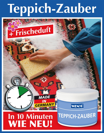 <br /><br />Teppich-Zauber hinterläßt bei sachgemäßer Anwendung keine Ränder und ist gift- und phosphatfrei.