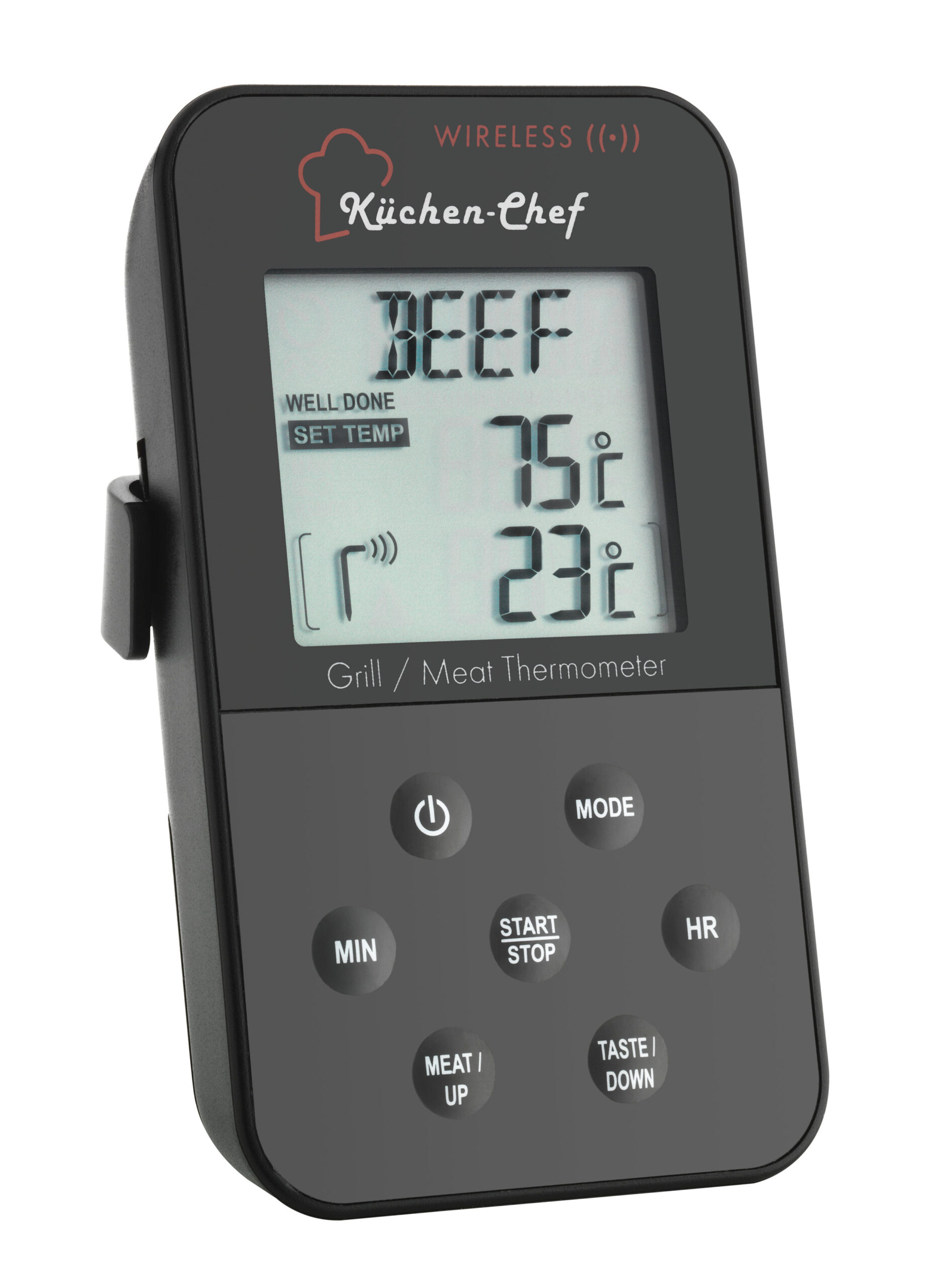 <br /><br />Bei unserem Funk-Grill-Bratenthermometer sind die optimalen Kerntemperaturen für verschiedene Fleischsorten und Garstufen schon vorprogrammiert. Natürlich können Sie auch die individuelle Temperaturvorgabe Ihres Lieblingsrezeptes einstellen.