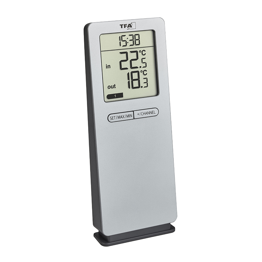 <br /><br />Das schlanke Instrument empfängt die Außentemperatur vor Ort über einen eigenen Funksender. Sie können hier bis zu drei Außensender verbinden!
