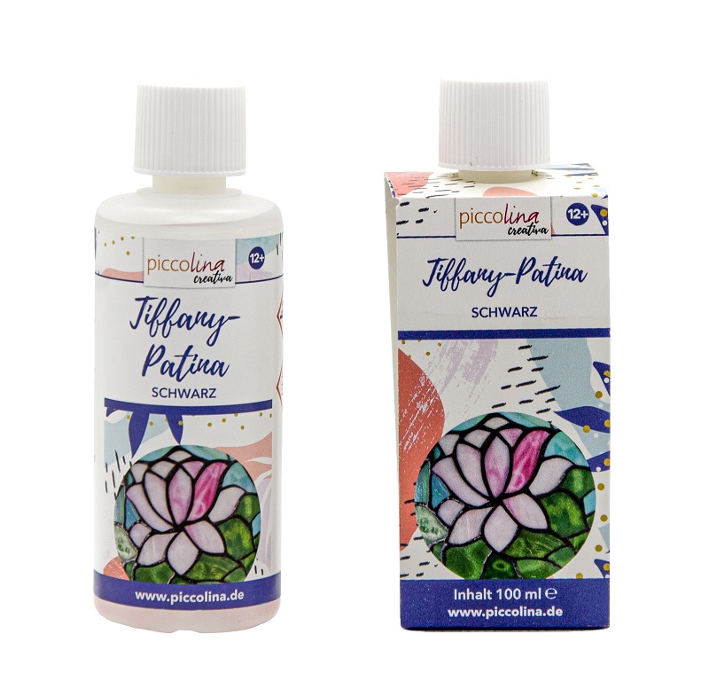 <br /><br />Nach dem Zusammenlöten der mit dünner Kupferfolie eingefassten Glasteile zu einem Bild oder Lampenschirm etc., werden die dadurch entstandenen halbrundförmigen Zinnnähte mit dieser speziellen Patina überzogen. Das geschieht durch das Übermalen mit einem weichen Pinsel. Durch das Zusammentreffen von Zinnfläche und Patina erfolgt eine chemische Reaktion, die zum Oxidieren der Zinnoberfläche führt. Sie verfärbt sich und zeigt eine schöne, gleichmässig schwarze Oberfläche, die dem Gegenstand dadurch ein klassisches, antikes Aussehen verleiht. Überreiben Sie danach die patinierten Zinnnähte mit einem mit Öl benässten Lappen. Dadurch wird das Weiteroxidieren der Zinnfläche verhindert.