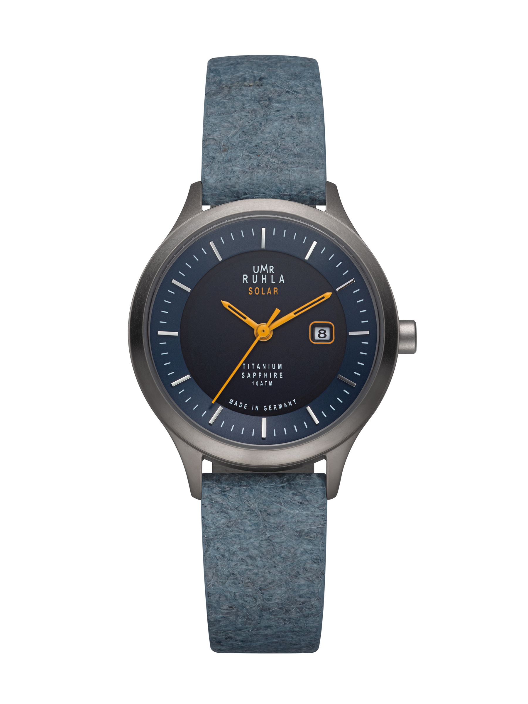 Uhren Manufaktur Ruhla – Armbanduhr Solar Ø 30mm Titan/ Band vegan, blau