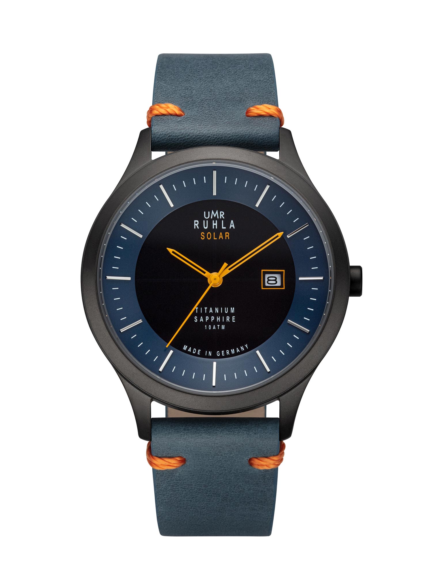 Uhren Manufaktur Ruhla – Armbanduhr Solar Ø 41mm Titan/ Band vegan blau