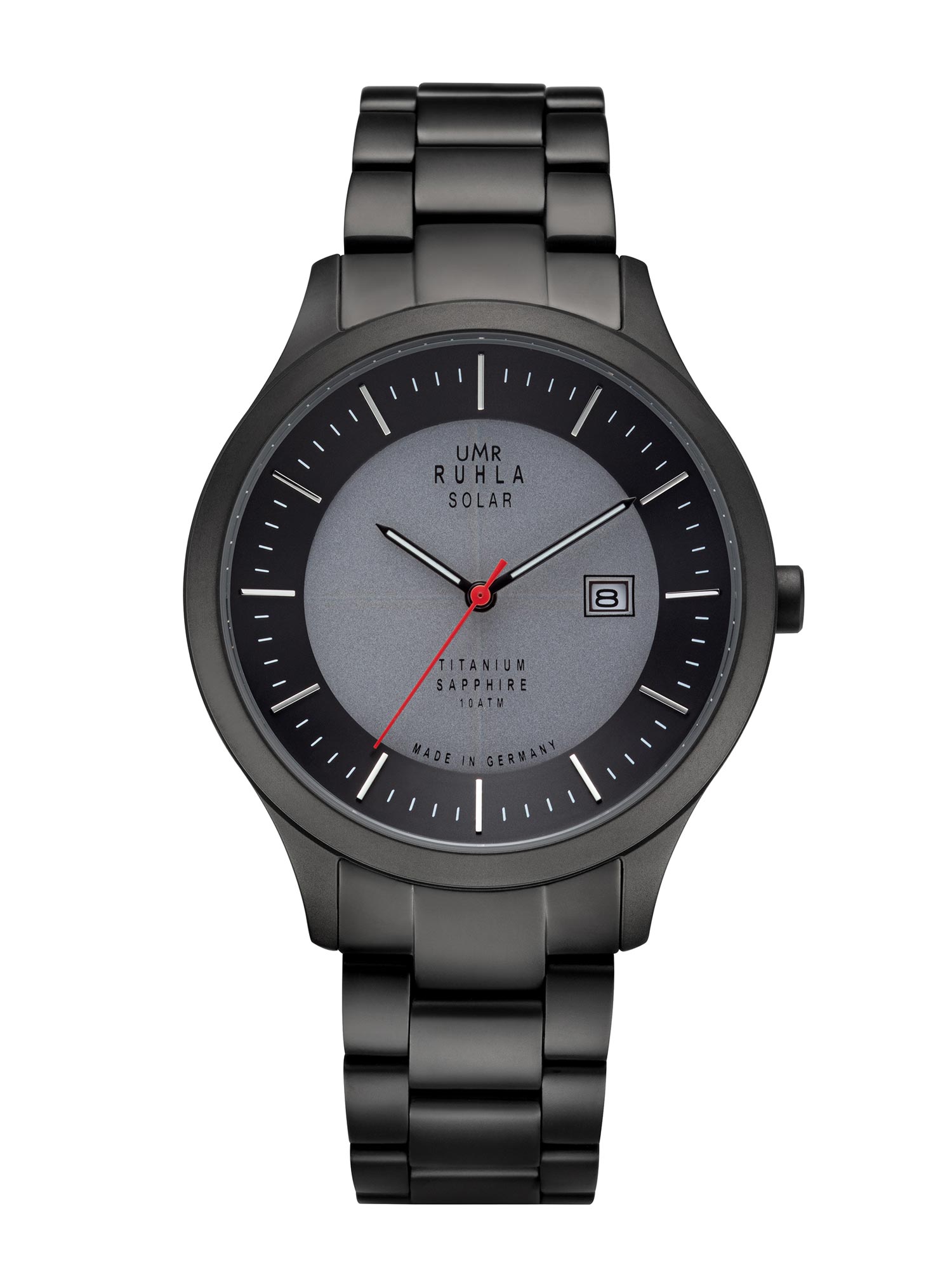 Uhren Manufaktur Ruhla – Armbanduhr Solar Ø 41mm Titan, schwarz-graues Zifferblatt