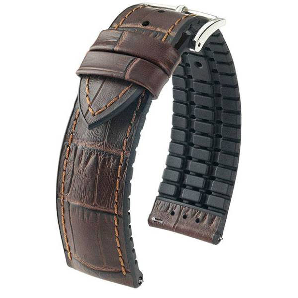 Uhrenband HIRSCH Leder+Kautschuk Paul dunkelbraun, 20mm