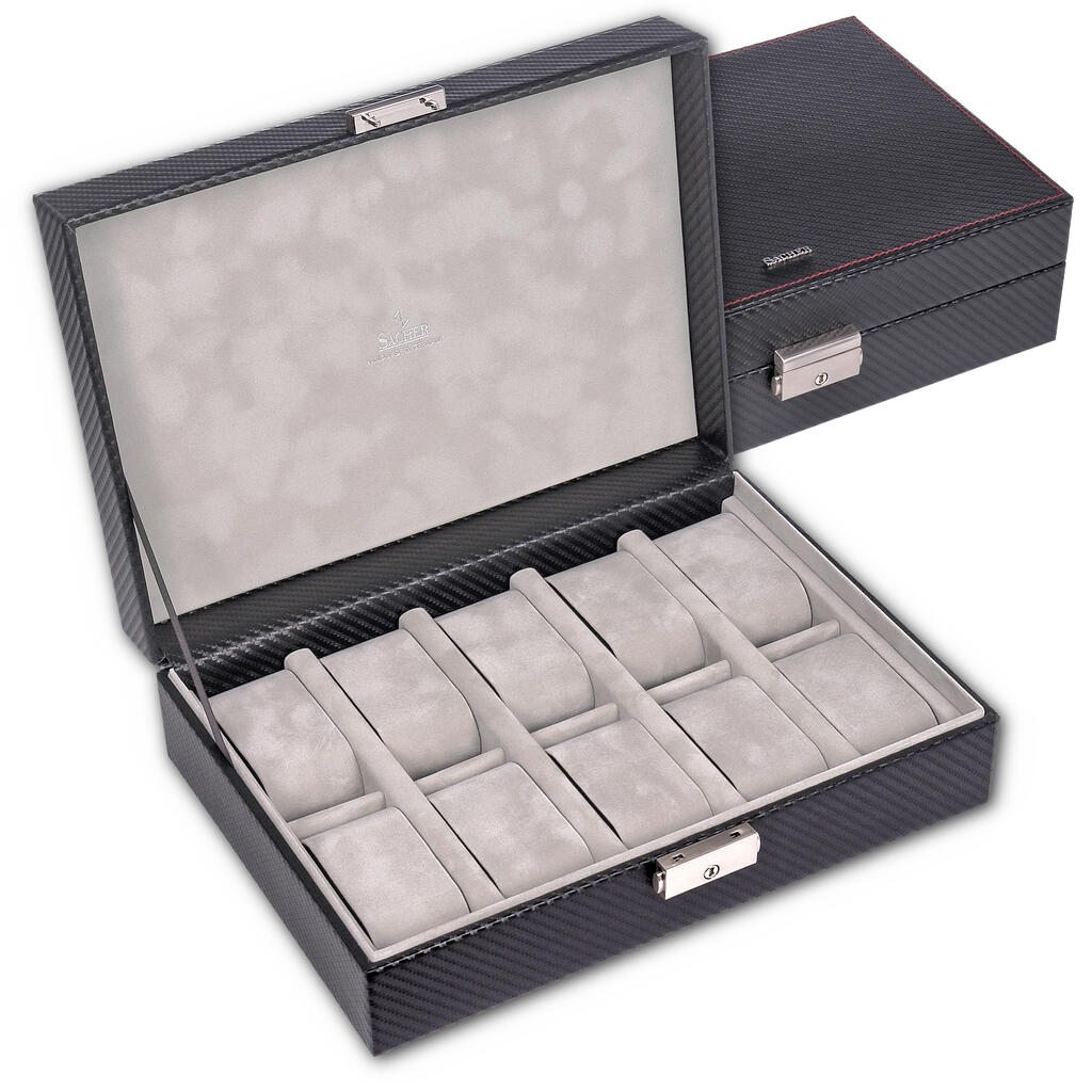 Handarbeit made in Germany! Perfekt zur übersichtlichen Aufbewahrung von Uhren. In sportlicher Carbon-Optik!