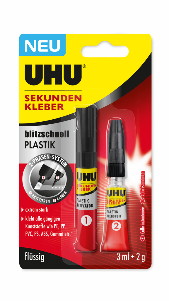 Endlich können auch Plastikteile wirkungsvoll geklebt werden – mit der neuen Klebstoffrevolution von UHU!