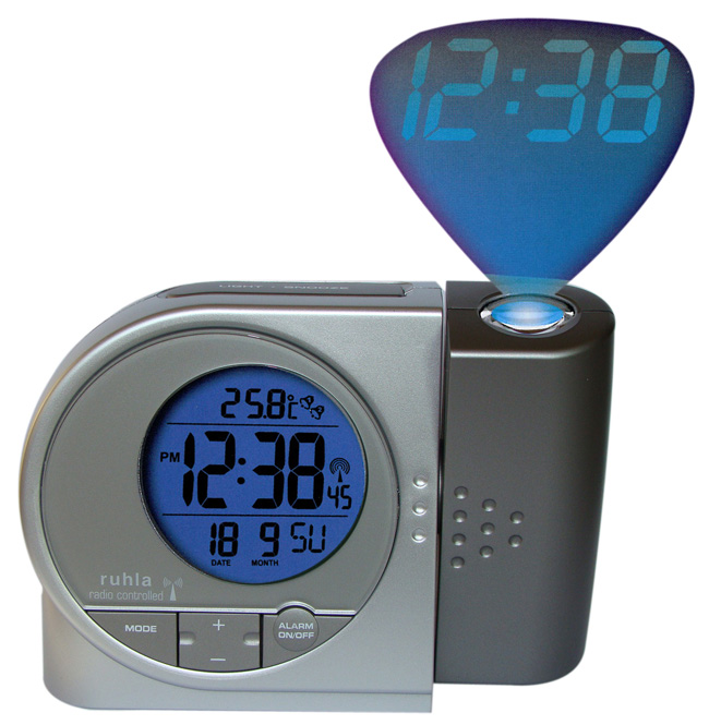 UMR Funk-Projektionswecker silber mit Farbwechselfunktion, 2 Weckzeiten und Datumsanzeige