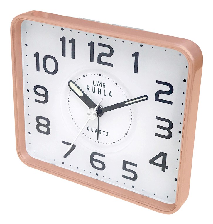 UMR Quarzwecker rosé, mit schleichender Sekunde und Blinklichtalarm