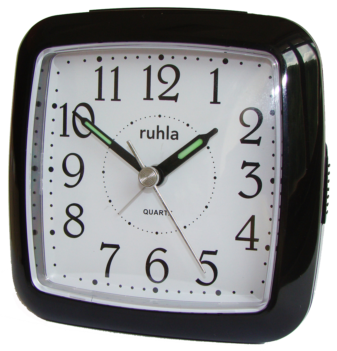 UMR Quarzwecker schwarz, mit schleichender Sekunde und Leuchtzeigern