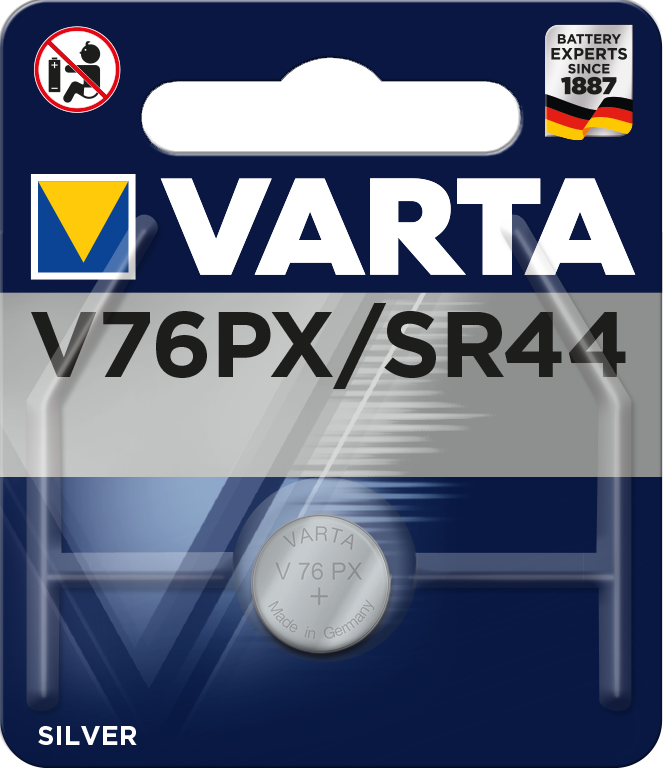 <br />V76PX ist die Bezeichnung von Varta für die SR44. SR44 und LR44 unterscheiden sich dadurch, dass erstere eine Silberoxidzelle ist mit einer über den Entladungszeitraum sehr konstanten Spannung von 1,55V (ähnliche Eigenschaften wie früher Quecksilberzellen). Die LR44 ist eine normale Alkalizelle mit 1,5V, bei der die Spannung über den Entladungszeitraum absinkt. Manche Kameras benötigen die konstante Spannung der SR44, um richtig zu belichten. Andere wiederum belichten mit einer LR44 richtig, zeigen aber nur mit einer SR44 auch die richtigen Werte im Sucher an (z.B. Modelle von Olympus).