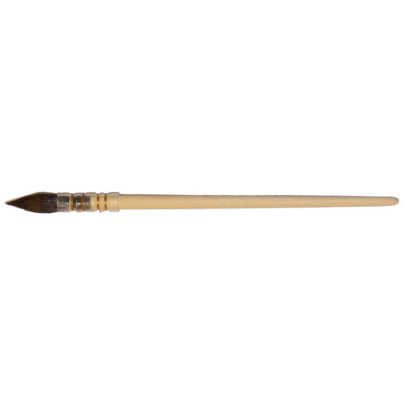 <br />Rund-oval gearbeitet, schwarzes Ziegenhaar, Kunststoffkiele, mit farbigem Draht auf rohem Holzstiel.