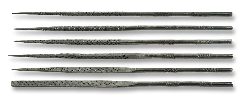 <br />Je 1 Feile: flachstumpf, flachspitz, halbrund, rund, dreikant, vierkant.