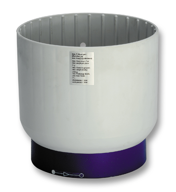 Dieser Behältertyp wird für das "Trockenpolieren" eingesetzt. Man erzielt bereits nach 2-3 Stunden Vorpolitur und 0,5 Stunden Nachpolitur sehr glatte Oberflächen und einen brillanten Glanz, vergleichbar mit einer Handpolitur.