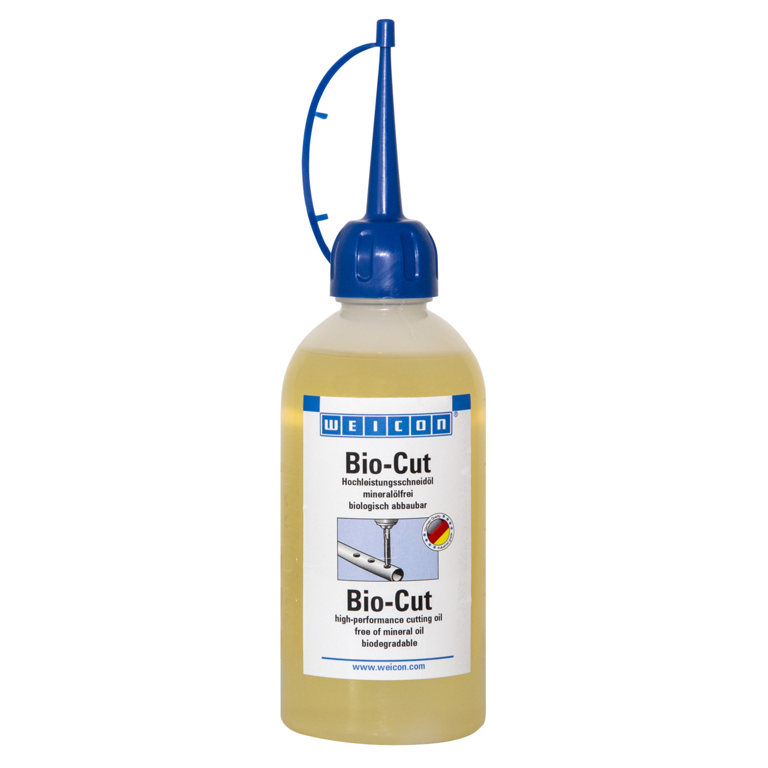 <br /><br />WEICON Bio-Cut ist mineralölfrei und biologisch abbaubar. Es ermöglicht durch seine besonders hohe Schmierwirkung größere Schnittgeschwindigkeiten, höhere Standzeiten und dadurch auch eine höhere Schneidleistung der Werkzeuge. WEICON Bio-Cut kann beim Bohren, Drehen, Fräsen, Reiben, Sägen, Stanzen und beim Gewindeschneiden aller Stahlsorten, Guss, Edelstähle, Kupfer, Messing, Aluminium und deren Legierungen in allen Bereichen der Industrie eingesetzt werden.