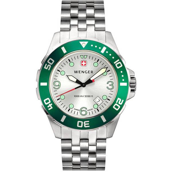 WENGER AquaGraph, Taucheruhr Edelstahl grau-grün
