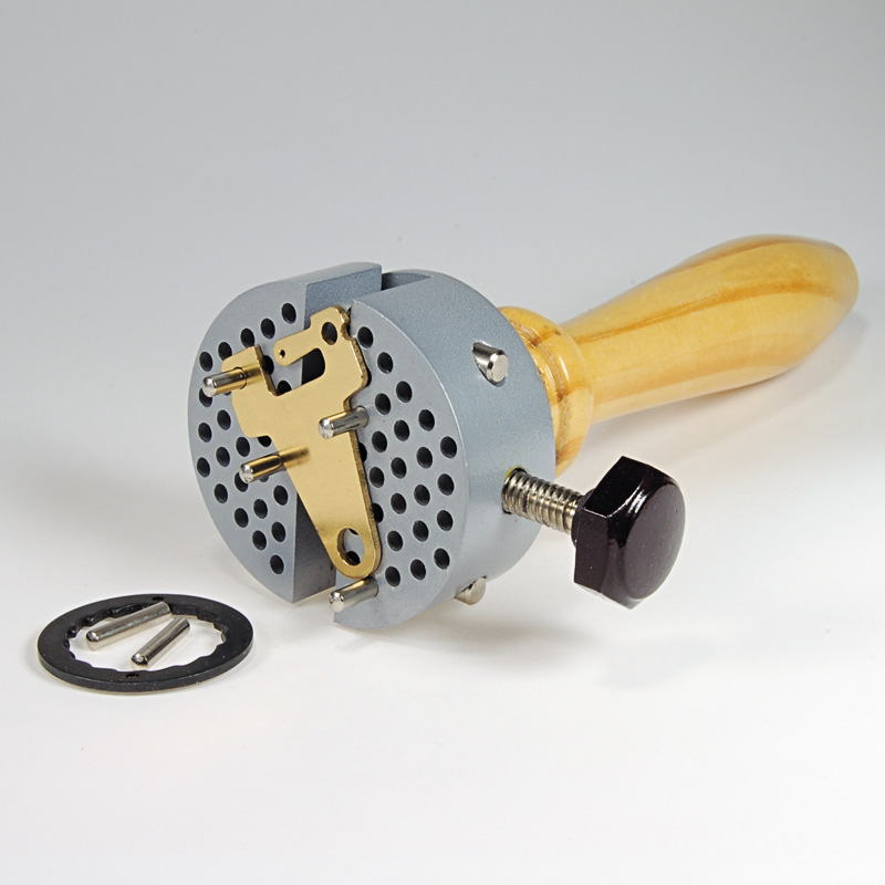 <br /><br />Hält ungewöhnliche Werkstücke mit insgesamt 8 in die Lochmatrix einsteckbaren Stahlstiften sicher fest. Feinste Arbeiten lassen sich so leicht ausführen. Kann auch im Schraubstock gespannt werden.