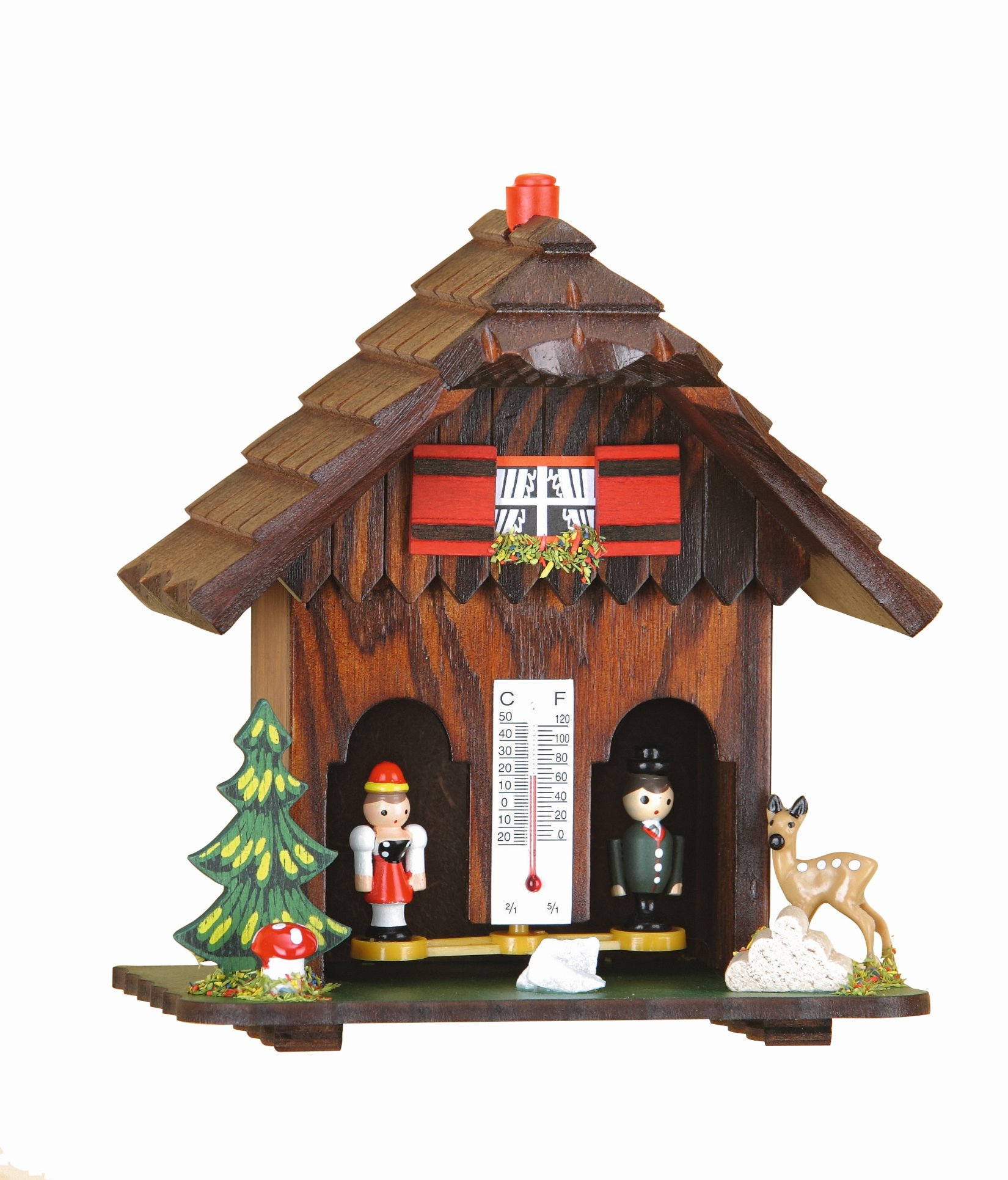 Das niedliche Wetterhaus zeigt durch seine Figuren das Wetter an: