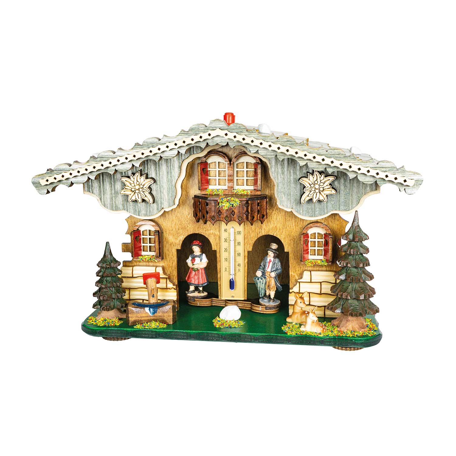 <br /><br />Unser Wetterhaus ist natürlich zu 100% "made in Germany" – genauer gesagt: 100% hergestellt im Schwarzwald. Das ist traditionelle Handwerkskunst, liebevoll nach historischen Vorbildern in Szene gesetzt. Natürlich aus Holz gefertigt und handbemalt. In der Mitte zwischen den Figuren ist ein Thermometer angebracht.