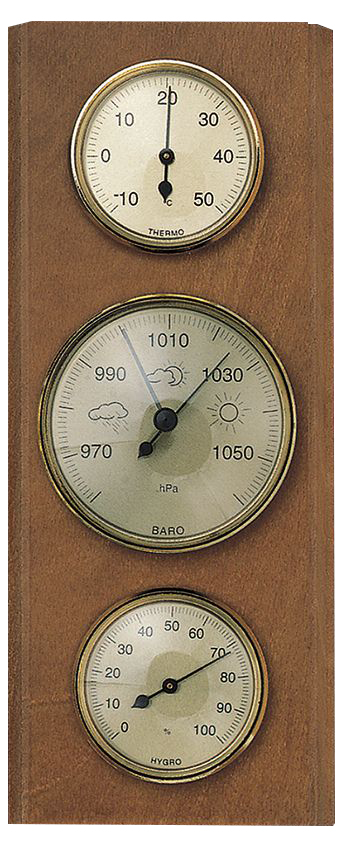 Alles auf einem Blick in schönen Dekoren: Wetterstationen, in Deutschland hergestellt! Jeweils mit Thermo-, Hygro- und Barometeranzeigen.