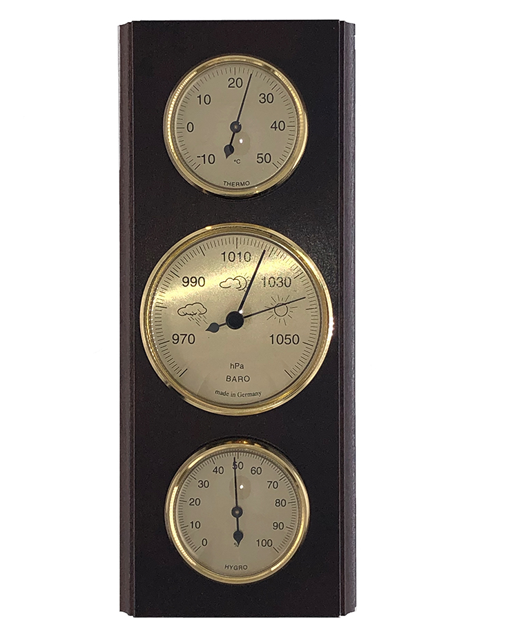 Alles auf einem Blick in schönen Dekoren: Wetterstationen, in Deutschland hergestellt! Jeweils mit Thermo-, Hygro- und Barometeranzeigen.