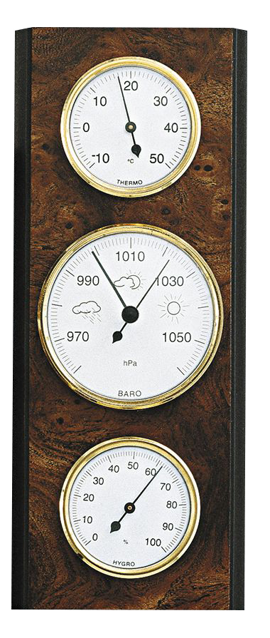 Wetterstation mit Hygrometer, Barometer und Thermometer aus Nusswurzel