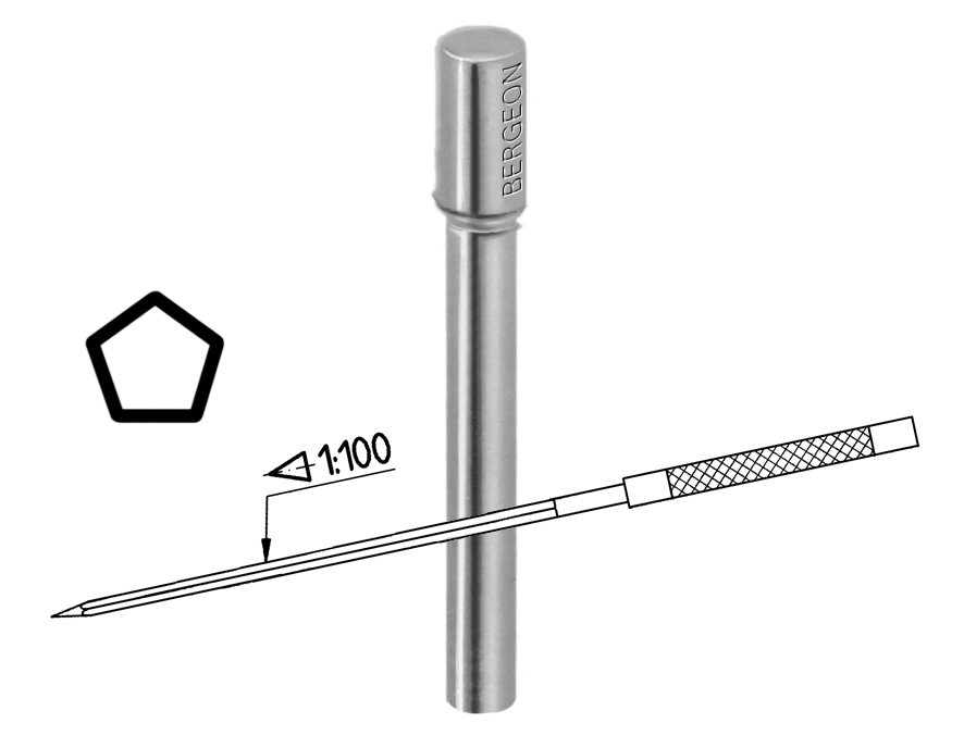 Konisch, fünfkantig, mit Metallheft.