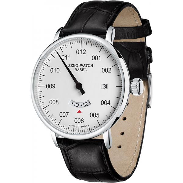 Zeno Bauhaus Einzeigeruhruhr – Schweizer qualitäts Quartzwerk (⬈ Cal. Ronda 505.24D) – weisses Zifferblatt- schwarze Klassikzahlen – weisser Stundenzeiger (keine Minute/Stunde)- weisse Datumsanzeige (3h)- digitale 24 Stundenzeige (6h) – Edelstahlgehäuse (poliert) – kratzgeschützes Mineralglas (flach) – abgesteptes Kalbslederband (schwarz) – Edelstahl Dornschliesse (poliert) Made in Basel: Als Basler Uhrenhersteller verwendet ZENO-WATCH BASEL natürlich auch Regionale Schweizer Uhrwerke von RONDA aus Lausen und Batterien von RENATA aus Itingen. Echtleder: Die für Leder charakteristische Beschaffenheit der Oberfläche macht jede Uhr zu etwas ganz Besonderem. Leichte Struktur oder Farbabweichungen zum Bild sind daher nicht auszuschliessen. 3 ATM wasserdicht (nicht zum Schwimmen geeignet) Ø: 42 mm, h: 11 mm 2 Jahre Garantie Preis inkl. original Etuie Das Einzeiger-Anzeigeprinzip Ohne Stress werden hier die 24 Stunden auf einer bedruckten, weissen Scheibe angezeigt, die sich nur einmal am Tag um das Zentrum dreht. Das rote Dreieck bei 6 Uhr zeigt die aktuelle Stunde an. Der Zentrumszeiger zeigt in 2 Mal 12 Stunden die Zeit in jeweils 5 Minuten markierten Schritten an. Die feine, symmetrische Einteilung mit der vorgelagerten Null vor den Stundenzahlen und der bis an den Zifferblattrand gezogenen Skala erlaubt dadurch eine noch höhere Ablesegenauigkeit. Die modisch abgestimmten Farben, machen die Uhrenkollektion zu einem modischen Accessoire. Bauhaus Quartzuhren Das Staatliche Bauhaus wurde 1919 von Walter Gropius in Weimar als Kunstschule gegründet. Nach Art und Konzeption war es damals etwas völlig Neues, da das Bauhaus eine Zusammenführung von Kunst und Handwerk darstellte. Das historische Bauhaus stellt heute die einflussreichste Bildungsstätte im Bereich der Architektur, der Kunst und des Designs im 20. Jahrhundert dar. Das Bauhaus bestand von 1919 bis 1933 und gilt heute weltweit als Heimstätte der Avantgarde der Klassischen Moderne auf allen Gebieten der freien und angewandten Kunst und Architektur. Die Resonanz des Bauhauses hält bis heute an und prägt wesentlich das Bild modernistischer Strömungen, Bekannte Bauhaus Schweizer Architekten/Künstler waren u.a. Johannes Itten, Paul Klee, Le Corbusier, Max Bill, Hannes Meyer… Quelle: Wikipedia Die Bauhaus Uhren von ZENO-WATCH BASEL erinnern an die eigene Schweizer Design Geschichte und zollt mit ihrem reduzierten Design der Bauhausbewegung Respekt. ⌚ OFFIZIELLE VERTRETUNG Wir verkaufen seit über 50 Jahren Uhren und sind ein zertifizierter Trusted Shop Als autorisierter Schweizer Fachhändler der Marke ZENO-WATCH BASEL profitieren Sie auch online von den entscheidenden Vorteilen hinsichtlich der Echtheit, den Garantieleistungen und des Nachverkaufsservice beim Online-Kauf. Wir führen in unserem Uhren Fachgeschäft in Basel noch viele weitere Schweizer Quartzuhren an Lager. Auch bei UHREN-SHOP.ch finden Sie noch mehr Zeno Armbanduhren. Einfach auf das Logo klicken »