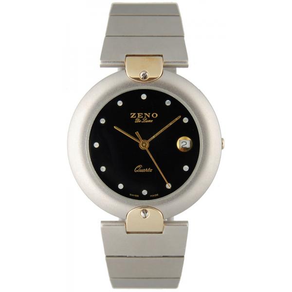 Grosse Zeno Modeuhren – Schweizer Quartzwerk – Zifferblatt schwarz – Indexpunkte (Similissteinchen) – weisse Datumsanzeige (3h) – vergoldete Zeiger – mattes Edelstahgehäuse – Mineralglas (flach) – Krone vergoldet – Edelstahlband mit einfacher Klappschliesse wassergeschützt (nicht zum Schwimmen geeignet)Ø: 35 mm, h: 6 mm2 Jahre Garantie Armbanduhren aus Basel ZENO-WATCH BASEL ist eine traditionsreiche, Familiengeführte Uhrenfabrikation, die 1868 von Jules Godat gegründet und seit 1922 unter dem Markennamen Zeno Uhren produziert. Anfangs auf die Produktion von Eisenbahner Taschenuhren spezialisiert, fertigte man schon in den 1930er Jahren Armbanduhren für Piloten. In den 60er Jahren konstruierte Zeno die unter Vakuum abgedichteten Compressor Uhren und erweiterte die Fliegeruhren Kollektion, für die ZENO-WATCH BASEL auch heute noch bekannt ist. Die Kollektion bietet aber auch noch diverse andere Zeitmessinstrumente wie die Airplane oder Army Diver Taucheruhren, die Bauhaus Design Uhren, die Gentlemen oder die zeitlos schönen Magellano Uhren… Im Inneren der Uhren findet man jegliche Arten von Schweizer Uhrwerken. Viele Versionen werden nur in kleinen Serien hergestellt und regelmässig Sondereditionen für Uhrensammler mit alten und seltenen Uhrwerken. Wir führen Uhren von Zeno-Watch Basel schon seit 50 Jahren und sind nach wie vor von der Qualität und dem guten Preis-Leistungsverhältnis überzeugt. Schweizer Damenuhr Ungetragene Armbanduhr mit Garantie vom Schweizer Uhrmacher. Die Uhr kann gerne vor einer Kaufentscheidung besichtigt, und auch vor Ort abgeholt werden. Portofreie Lieferung Schweizer Armbanduhr Ungetragene Armbanduhr mit Garantie vom Schweizer Uhrmacher. Die Uhr kann gerne vor einer Kaufentscheidung besichtigt, und auch vor Ort abgeholt werden. Portofreie Lieferung ⌚ OFFIZIELLE VERTRETUNG Wir verkaufen seit über 50 Jahren Uhren und sind ein zertifizierter Trusted Shop Als autorisierter Schweizer Fachhändler der Marke ZENO-WATCH BASEL profitieren Sie auch online von den entscheidenden Vorteilen hinsichtlich der Echtheit, den Garantieleistungen und des Nachverkaufsservice beim Online-Kauf. Wir führen in unserem Uhren Fachgeschäft in Basel noch viele weitere Schweizer Quartzuhren an Lager. Auch bei UHREN-SHOP.ch finden Sie noch mehr Zeno Armbanduhren. Einfach auf das Logo klicken »