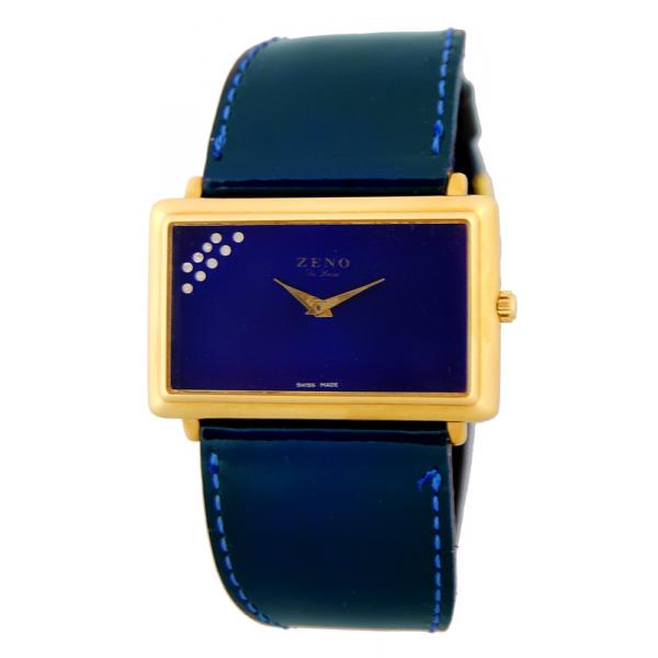 ZENO, Rectangulair, grosse Quartz Damenuhr, vergoldet blau