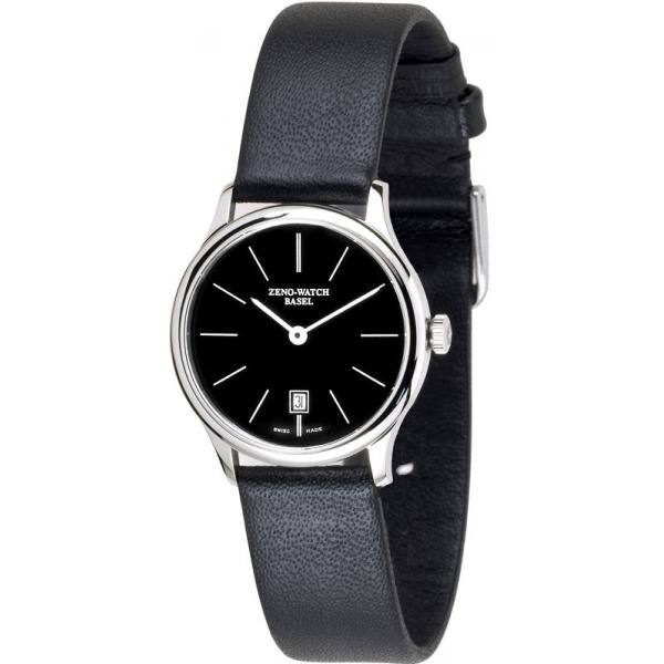Beständigkeit und Zeitgeist. Minimales Design – Maximaler Style Bauhaus Desingeruhren – Schweizer präzisions Quartzwerk (Cal. Ronda 515) – schwarzes Zifferblatt – aufgedruckte Indexeinteilung (keine Minunteneinteilung) – feine Baguette Zeiger (weiss)   keine Sekundenanzeige – weisse Datumsanzeige (6h) – schlichtes Edelstahlgehäuse (poliert) – kratzfestes Saphirglas (flach) – verschraubter Edelstahlboden – leicht versenkte Zylinderkrone – neutrales Kalbslederband (schwarz) – Edelstahl Dornschliesse – Materialien erfahrungsgemäss antiallergisch 3 ATM wasserdicht (DIN) nicht zum Schwimmen geeignet Ø: 30 mm, h: 6 mm 2 Jahre Garantie Preis inkl. original Etuie Das Staatliche Bauhaus wurde 1919 von Walter Gropius in Weimar als Kunstschule gegründet. Nach Art und Konzeption war es damals etwas völlig Neues, da das Bauhaus eine Zusammenführung von Kunst und Handwerk darstellte. Das historische Bauhaus stellt heute die einflussreichste Bildungsstätte im Bereich der Architektur, der Kunst und des Designs im 20. Jahrhundert dar. Das Bauhaus bestand von 1919 bis 1933 und gilt heute weltweit als Heimstätte der Avantgarde der Klassischen Moderne auf allen Gebieten der freien und angewandten Kunst und Architektur. Die Resonanz des Bauhauses hält bis heute an und prägt wesentlich das Bild modernistischer Strömungen, Bekannte Bauhaus Schweizer Architekten/Künstler waren u.a. Johannes Itten, Paul Klee, Le Corbusier, Max Bill, Hannes Meyer… Quelle: Wikipedia Original Schweizer Zeno Damenuhr Ungetragene Armbanduhr mit Garantie vom Schweizer Uhrmacher. Die Uhr kann gerne vor einer Kaufentscheidung besichtigt, und auch vor Ort abgeholt werden. Portofreie Lieferung Die kleine ZENO Design Uhren im reduzierten, puristischen Stil, punkten durch unaufdringliche Eleganz und Geradlinigkeit. Wir sind offizielle Konzessionäre. Sie können alle Modelle auch telefonisch bestellen. Gerne machen wir Ihnen ein Angebot! ⌚ OFFIZIELLE MARKEN VERTRETUNG Wir verkaufen seit über 50 Jahren Uhren und sind ein zertifizierter Trusted Shop Als autorisierter Schweizer Fachhändler der Marke ZENO-WATCH BASEL profitieren Sie auch online von den entscheidenden Vorteilen hinsichtlich der Echtheit, den Garantieleistungen und des Nachverkaufsservice beim Online-Kauf. Wir führen in unserem Uhren Fachgeschäft in Basel noch viele weitere Schweizer Armbanduhren an Lager. Auch bei UHREN-SHOP.ch finden Sie noch mehr Zeno Modelle. Einfach auf das Logo klicken »