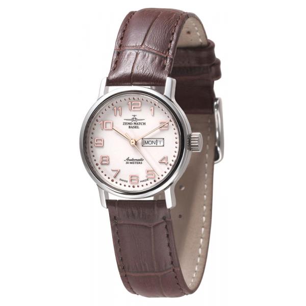 ZENO-WATCH BASEL, Retro Femina, Automatik Uhr, Tag Datum, weiss/rosé
