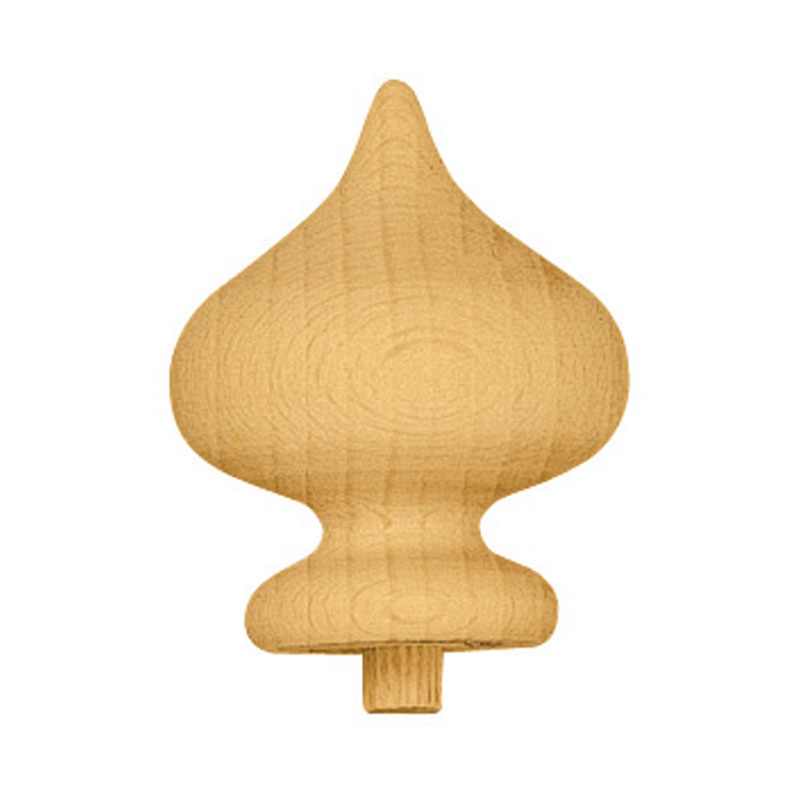 Gedrechselt, unbehandelt jedoch vorgeschliffen. Können gebeizt oder lackiert werden. Buchenholzteile können auf "Nussbaum" gebeizt werden. (Längenangabe ohne Dübel!)