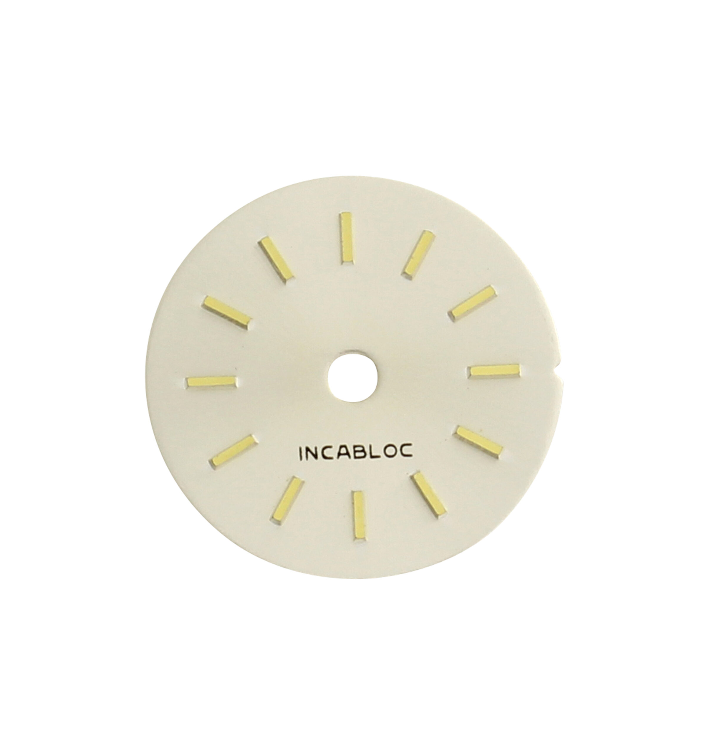 ETA 2412 Zifferblatt silber mit gelben Indexen Ø 13,5