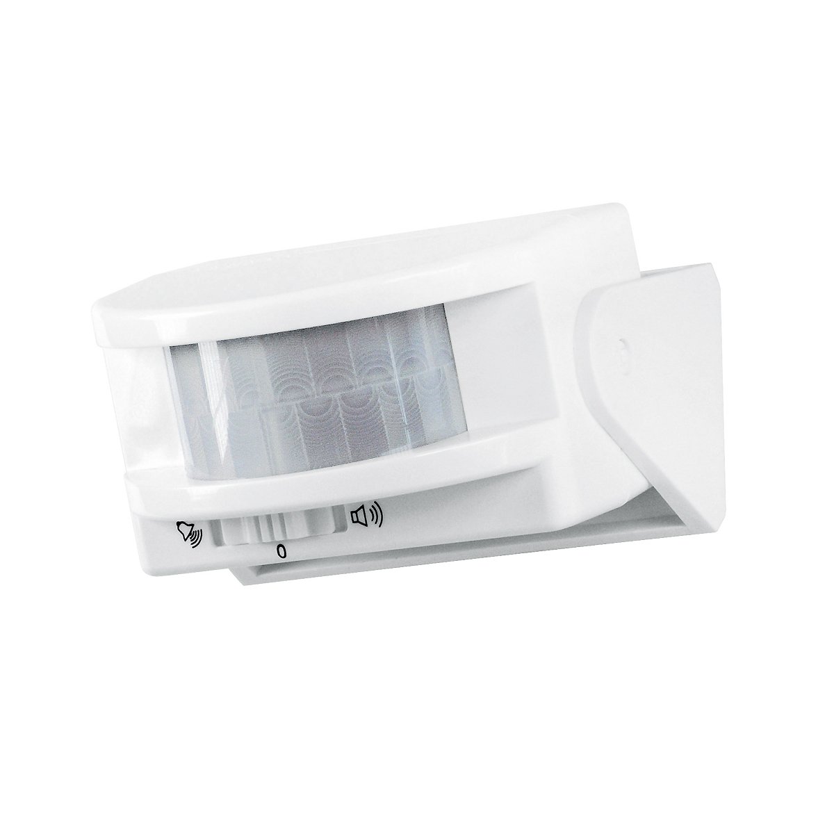 Der Bewegungsmelder reagiert auf Körperwärme und aktiviert wahlweise den eingebauten Gong oder die Sirene (ca. 85 db laut), sobald eine Person den Erfassungsbereich betritt.